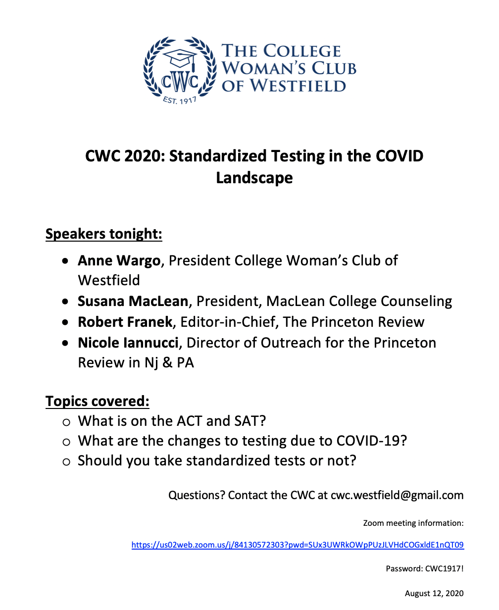 Agenda Zoom #2 Standardized Testing in COVID Landscape