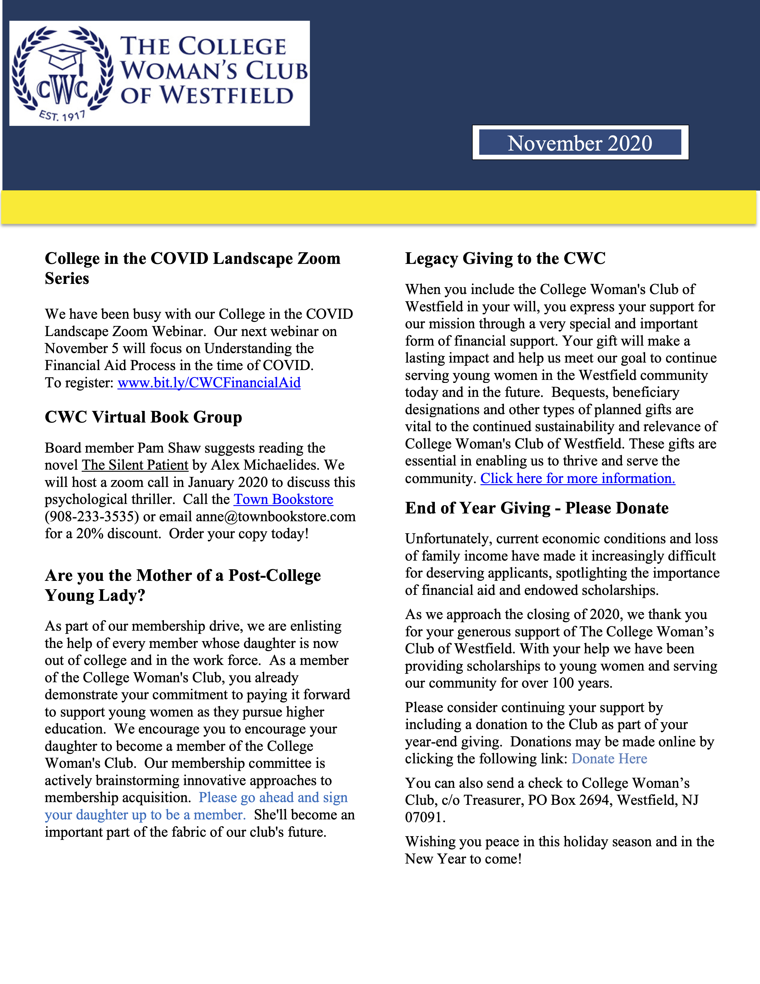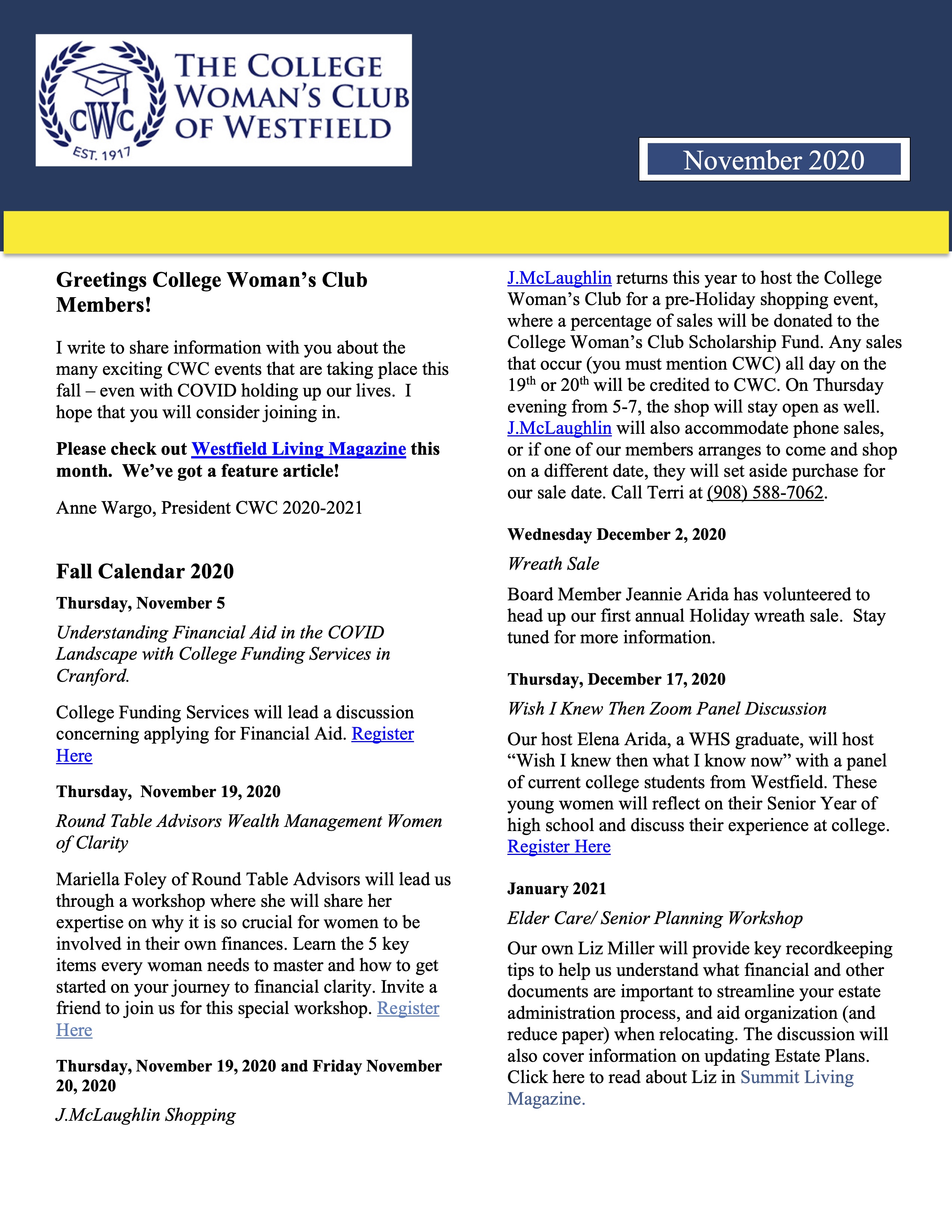 CWC Fall, Nov. 2020 Newsletter