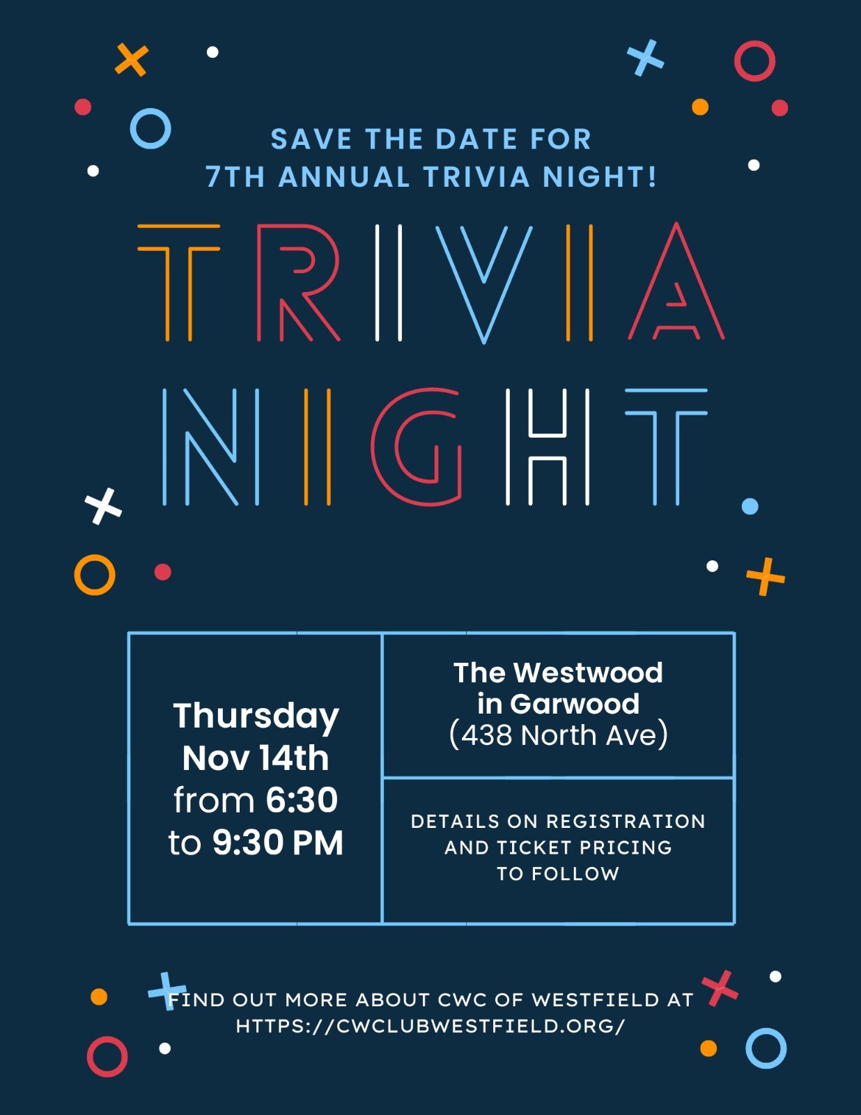 ← Join us at The Westwood in Garwood (438 North Ave) for our 7th Annual Trivia Night!