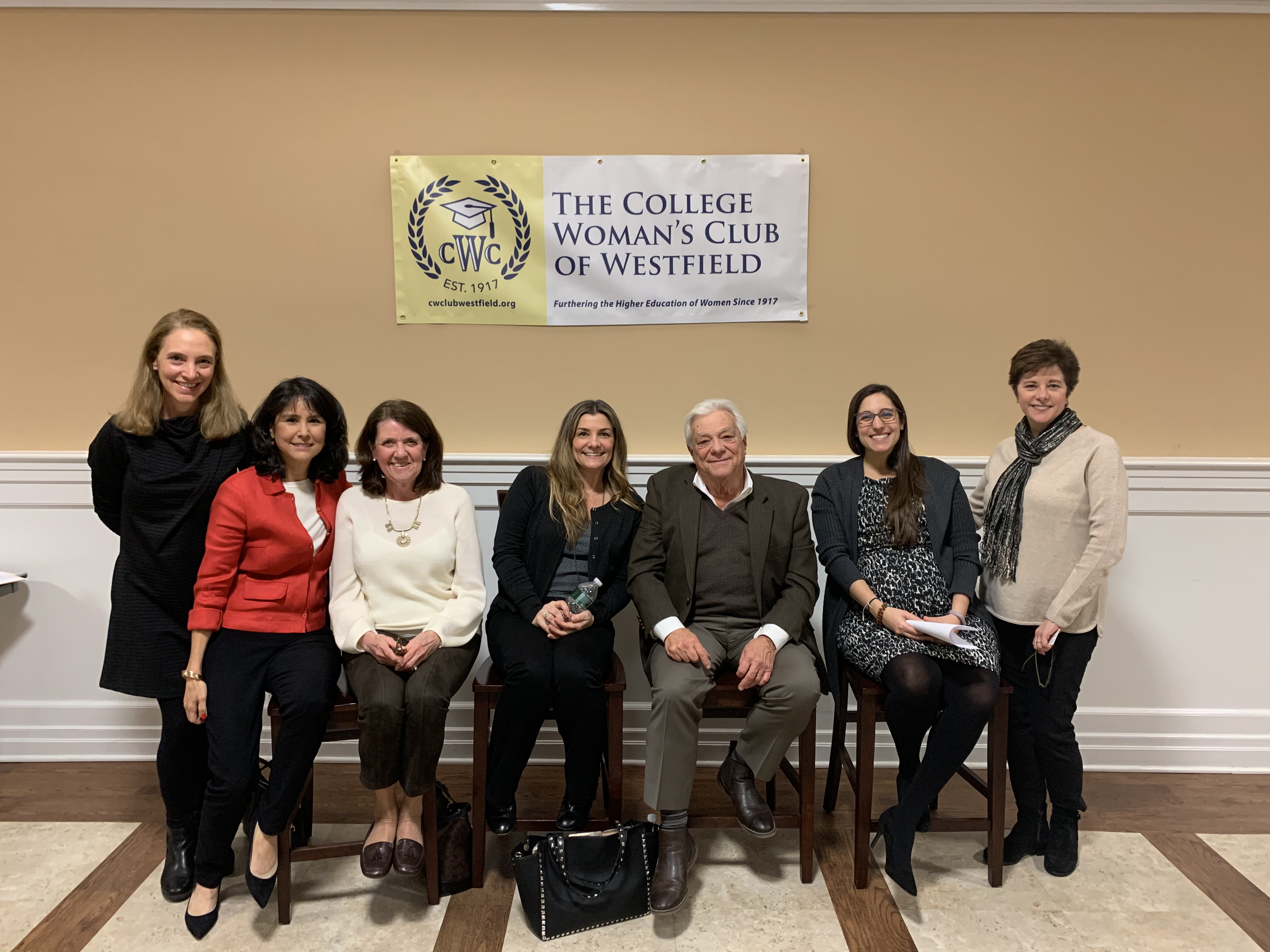 L to R: CWC Vice-president and evening moderator Anne Wargo, Susana Maclean, Maureen Mazzarese, Jill Gross, Phil Gross, Cassandra Stahl and CWC President Fran Moum.